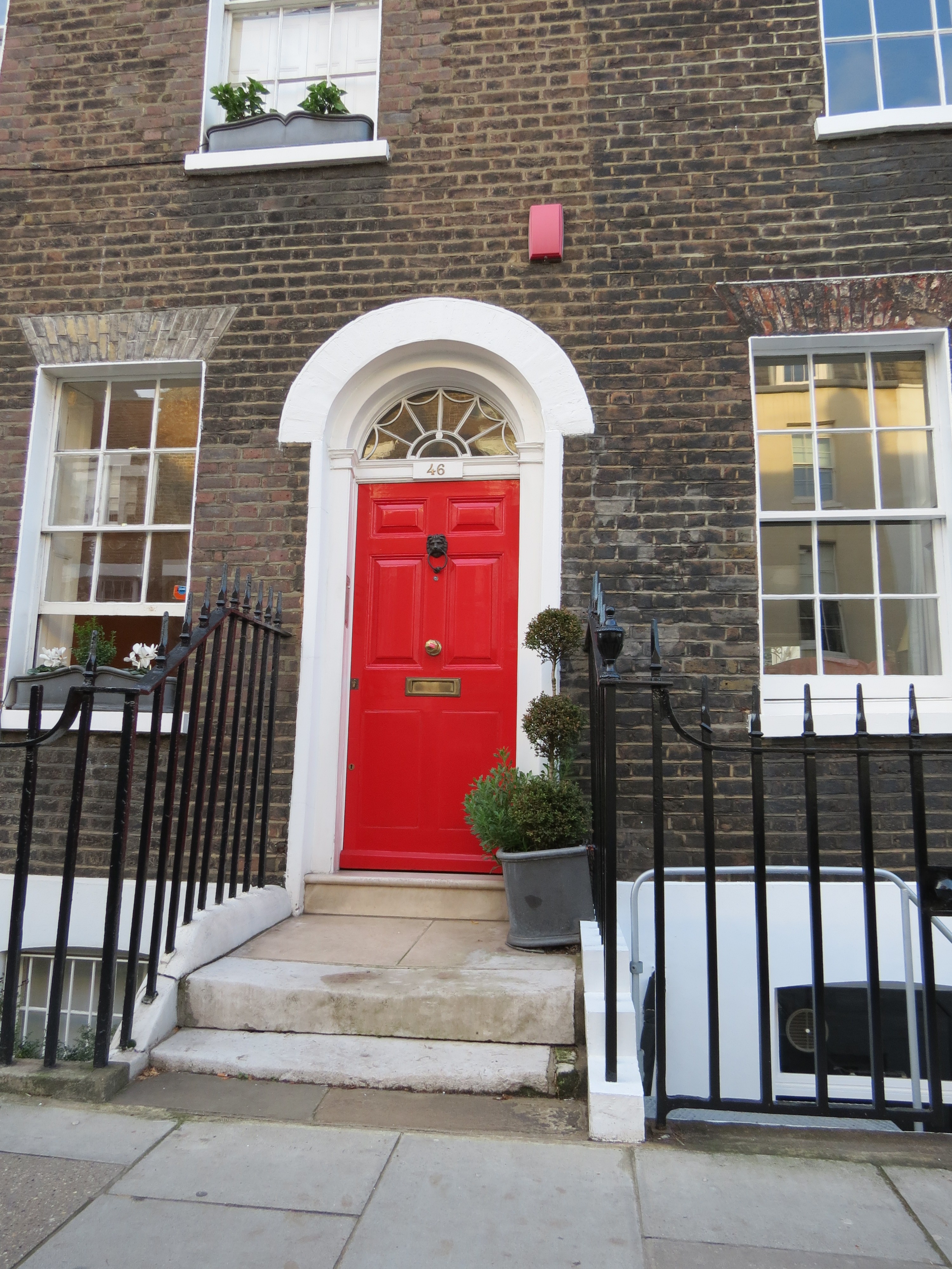 A beautiful Georgian house in Chelsea. Nothing else is necessary to contrast the beautiful proportions of these facades than a beautiful red door.